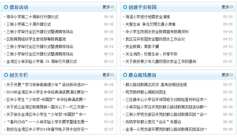 珠海市金灣區(qū)教育局2013年與動易進行項目合作,建設(shè)珠海市金灣區(qū)教育信息網(wǎng)。金灣區(qū)教育局以資源整合、信息共享為基礎(chǔ),選用動易SiteGroup站群管理系統(tǒng)和動易Smartschool數(shù)字化校園管理系統(tǒng)等動易軟件建立以區(qū)教育局網(wǎng)站為中心主站,以所轄20所學校網(wǎng)站為子網(wǎng)站、以社會公眾為服務(wù)對象的金灣區(qū)教育信息網(wǎng)站群系統(tǒng)。通過統(tǒng)一規(guī)劃、統(tǒng)一部署、統(tǒng)一管理,基于對分散的信息資源進行有效的整合,實現(xiàn)資源互通共享,避免信息孤島,加快教育局對公眾實現(xiàn)“一站式”服務(wù)的步伐,提高網(wǎng)站的應(yīng)用水平。