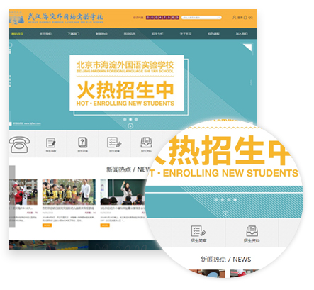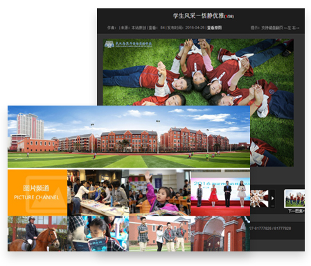 首頁首屏采用滾動大圖的形式,展示校園環(huán)境、課堂教學(xué)等圖片內(nèi)容,不僅使網(wǎng)站界面整體上清新高雅、大氣美觀,具有強(qiáng)烈的動態(tài)美感,而且大圖作為網(wǎng)站的一種有效的宣傳方式,作為網(wǎng)站的直接視覺元素,可以有效地吸引用戶的注意力,突出學(xué)?,F(xiàn)代化、國際化學(xué)校辦學(xué)特色。