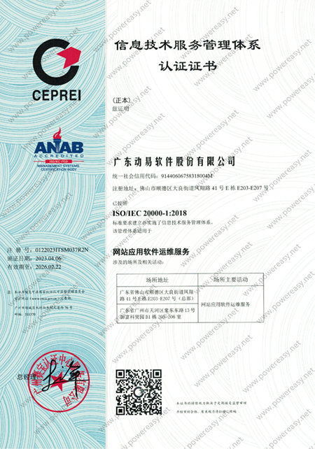 ISO 20000 信息技術(shù)服務管理體系證書