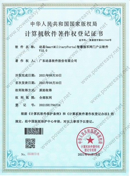 軟件著作權(quán)-動易SmartMilitaryPortal智慧強軍網(wǎng)門戶云軟件V10.0