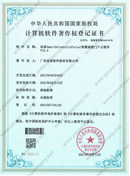軟件著作權(quán)-動易SmartUniversityPortal智慧高校門戶云軟件 V10.0