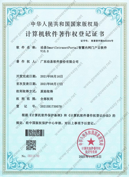 軟件著作權(quán)-動易SmartIntranetPortal智慧內(nèi)網(wǎng)門戶云軟件V10.0