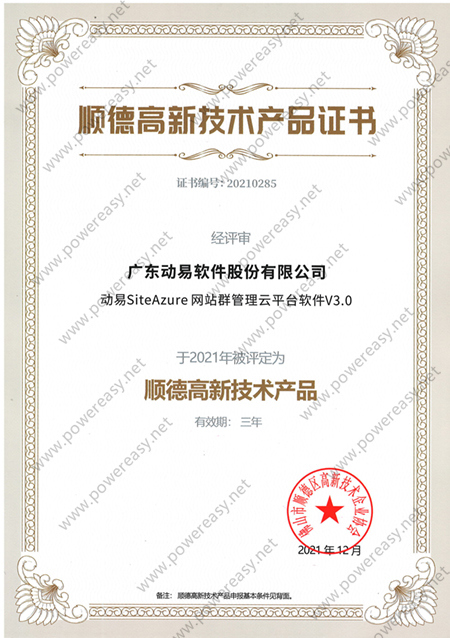 2021高新技術(shù)產(chǎn)品證書—動易SiteAzure 網(wǎng)站群管理云平臺軟件V3.0