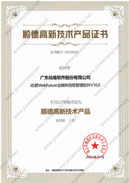 2022年高新技術(shù)產(chǎn)品—動易WebFuture全媒體信息管理軟件V10.0