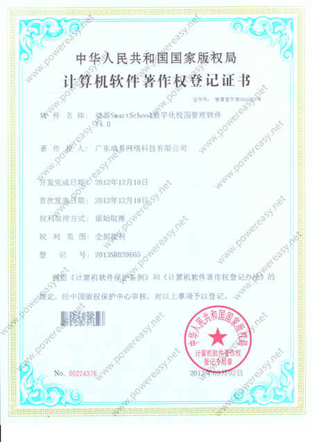 計(jì)算機(jī)軟件著作權(quán)登記證書 動(dòng)易 SmartSchool V3.0