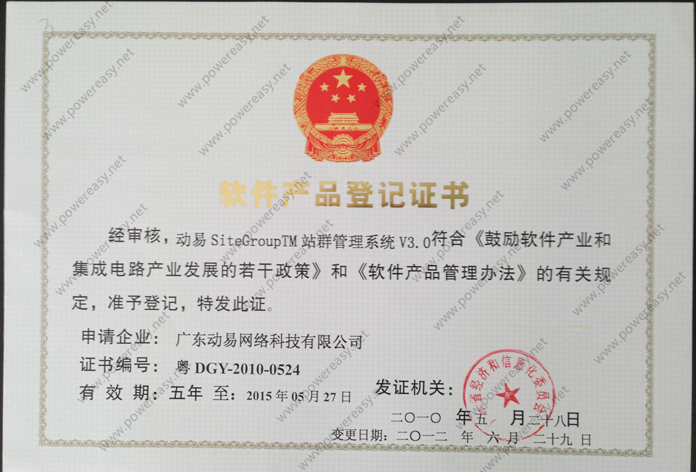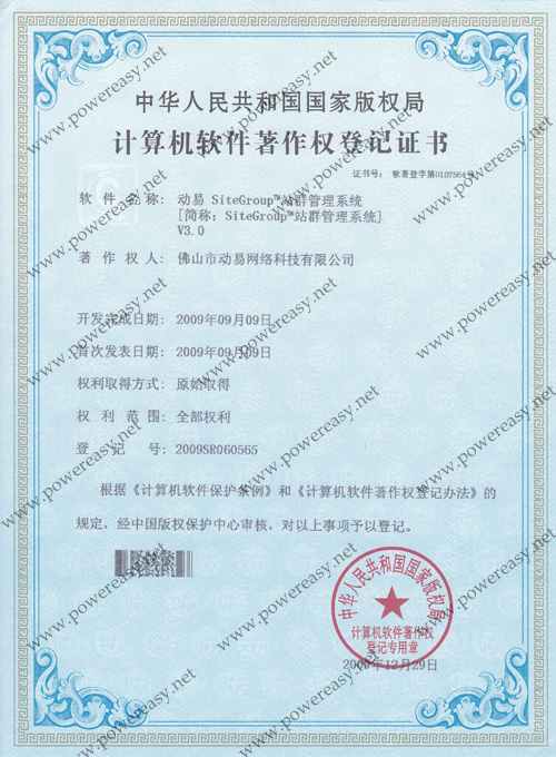 軟件產(chǎn)品登記證書 動(dòng)易SiteGroup站群管理系統(tǒng)V3.0