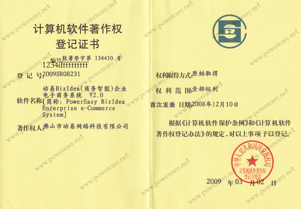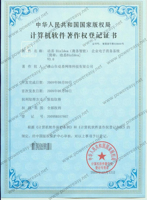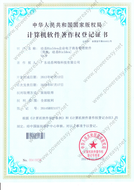 軟件著作權(quán)-動(dòng)易BizIdea企業(yè)電子商務(wù)管理軟件V5.0