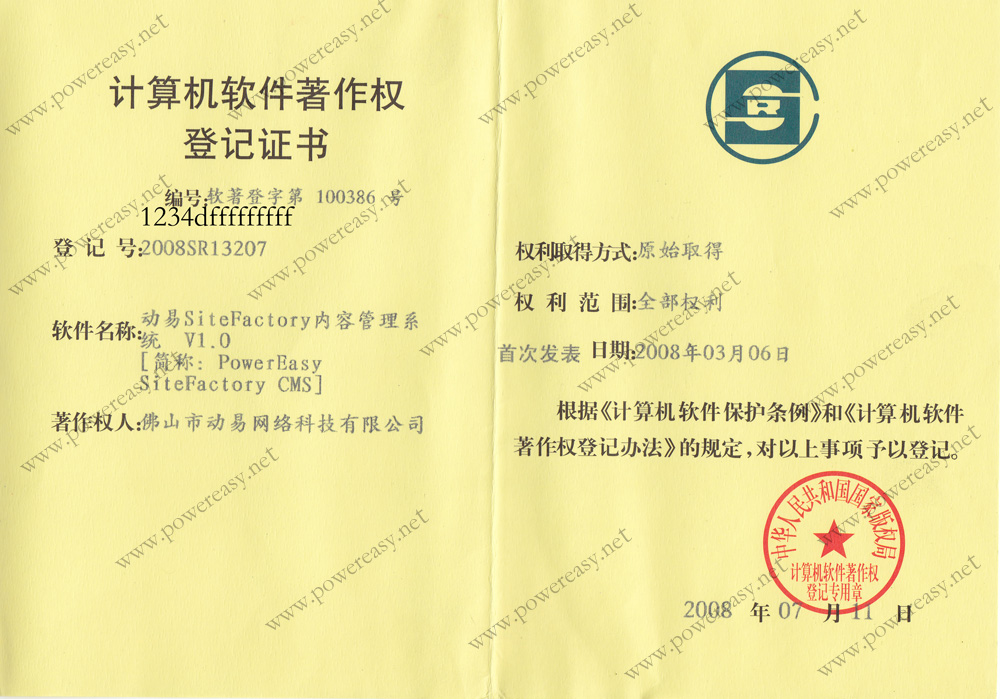 軟件著作權(quán)登記證書 動(dòng)易SiteFactory CMS