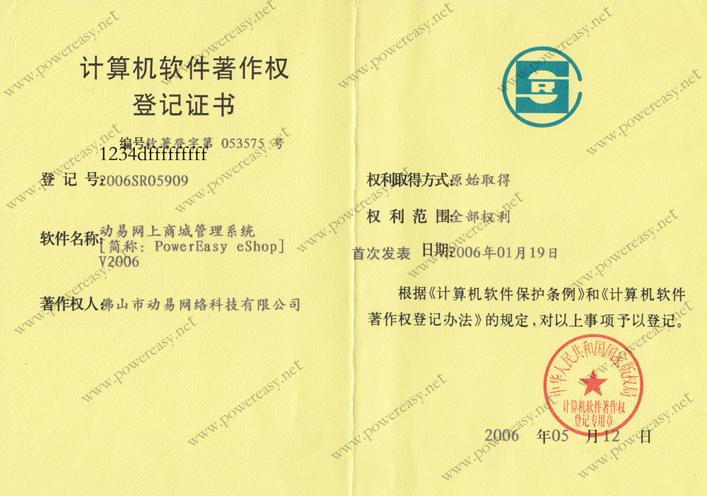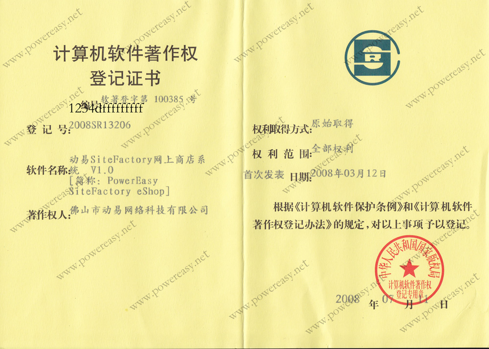 軟件著作權(quán)登記證書 動(dòng)易SiteFactory eShop