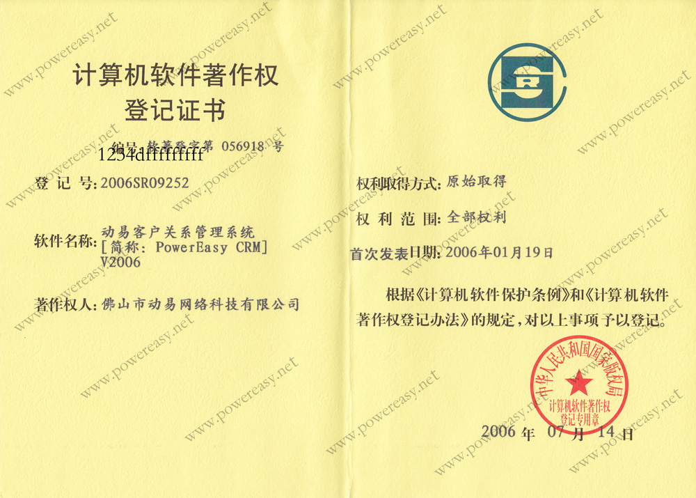 軟件著作權(quán)登記證書 動(dòng)易客戶關(guān)系管理系統(tǒng)V2006