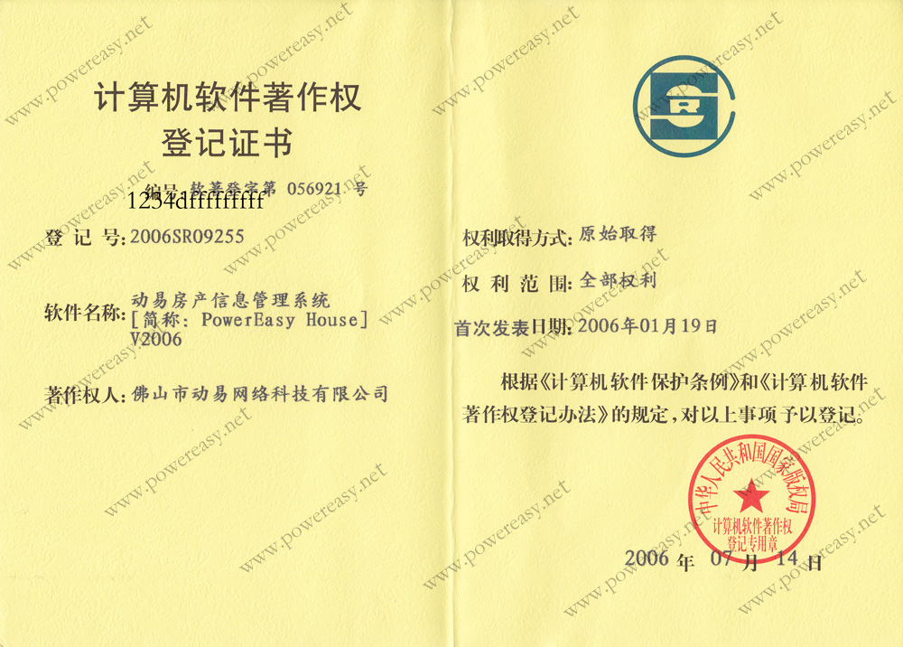 軟件著作權(quán)登記證書 動(dòng)易房產(chǎn)信息管理系統(tǒng)V2006
