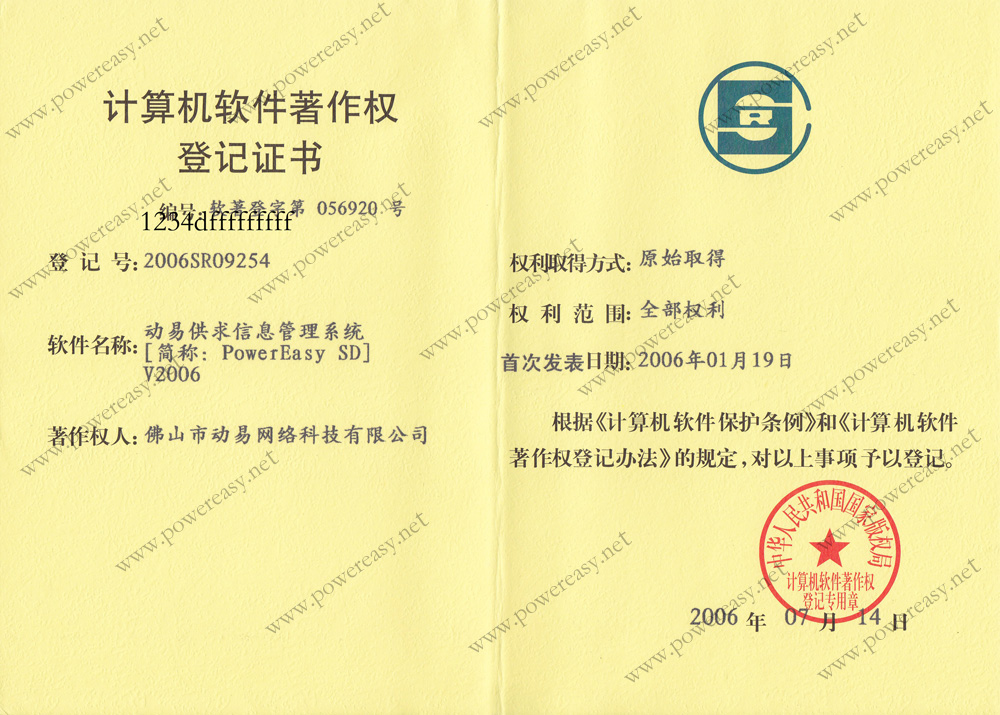 軟件著作權(quán)登記證書 動(dòng)易供求信息管理系統(tǒng)V2006
