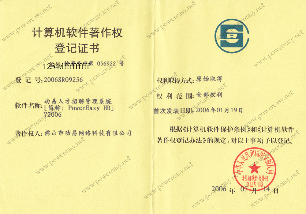 軟件著作權(quán)登記證書 動(dòng)易人才招聘管理系統(tǒng)V2006