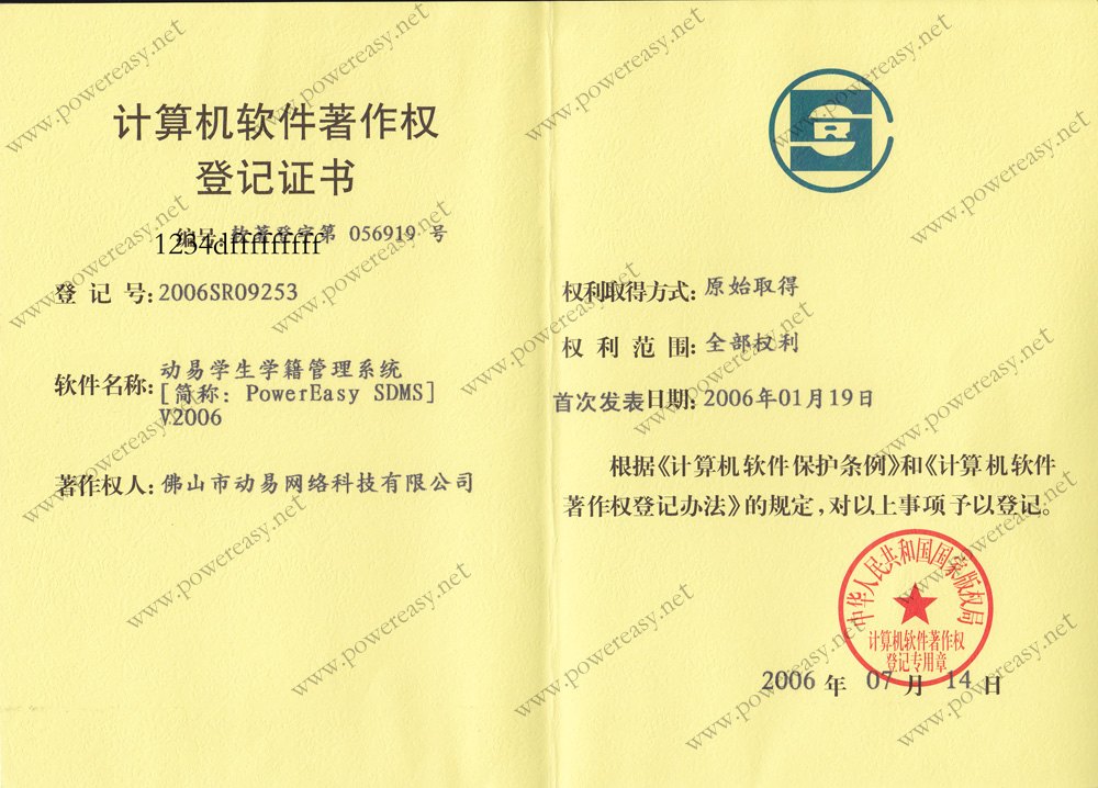 軟件著作權(quán)登記證書 動(dòng)易學(xué)生學(xué)籍管理系統(tǒng)V2006