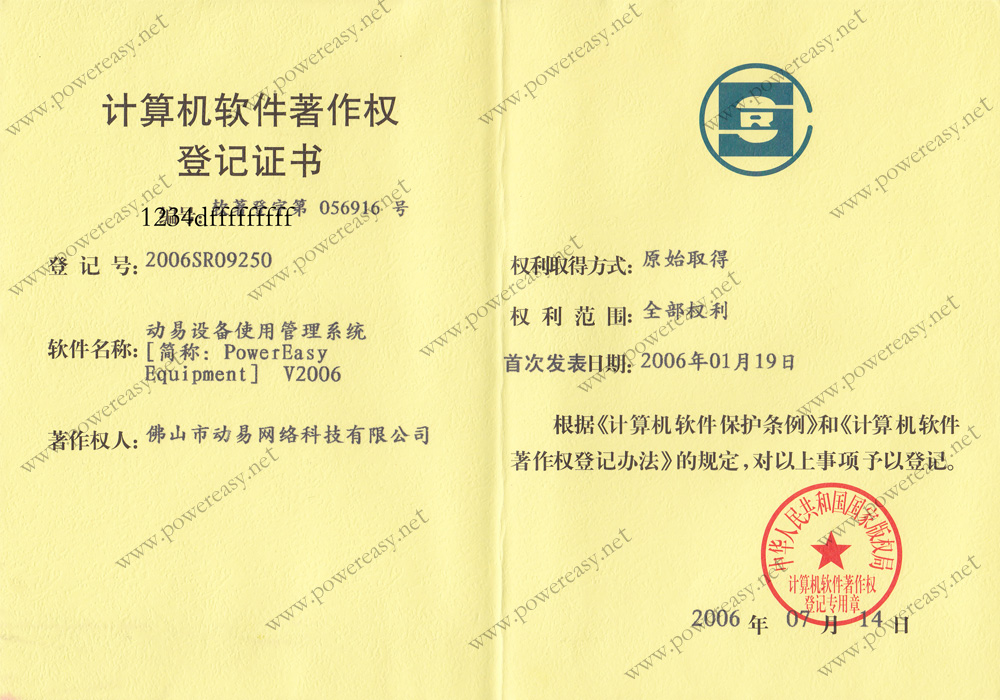 軟件著作權(quán)登記證書 動(dòng)易設(shè)備使用管理系統(tǒng)V2006