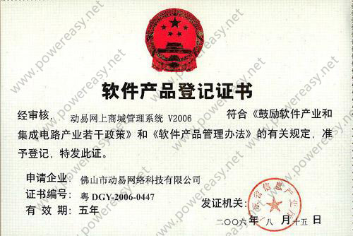 軟件產(chǎn)品登記證書 動(dòng)易網(wǎng)上商城管理系統(tǒng)V2006