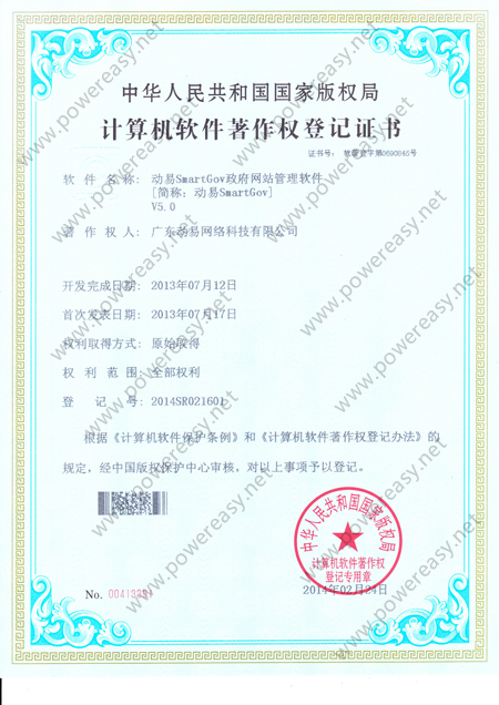 軟件著作權(quán)-動(dòng)易SmartGov政府網(wǎng)站管理軟件V5.0