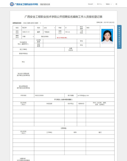03高度仿真的報(bào)名表填寫(xiě)和查看界面