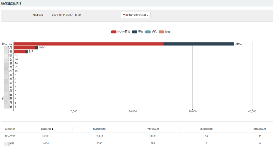 站點(diǎn)瀏覽量明細(xì)提供折線圖、柱形圖等數(shù)據(jù)表現(xiàn)形式,有利于了解站點(diǎn)的訪問情況和訪問者關(guān)注分布情況。