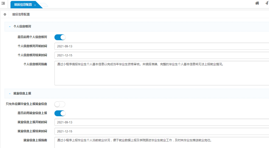 畢業(yè)生在小程序中填報就業(yè)信息后,管理員在后臺對學生提交的就業(yè)信息進行初審和終審。審核不通過的就業(yè)信息,會微信通知學生進行修改并重新上報。