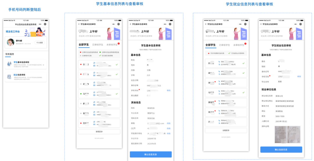 通過微信二維碼進入小程序并將獲取到的手機號與畢業(yè)生數(shù)據(jù)進行匹配。