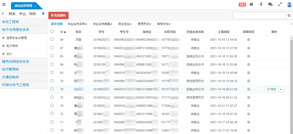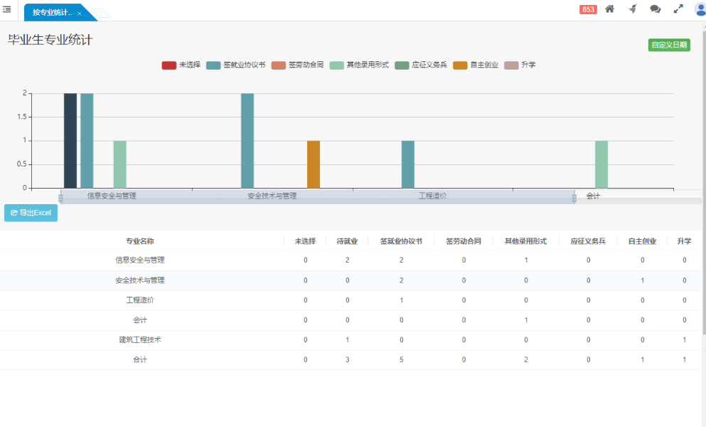 畢業(yè)生就業(yè)信息支持多維度統(tǒng)計: