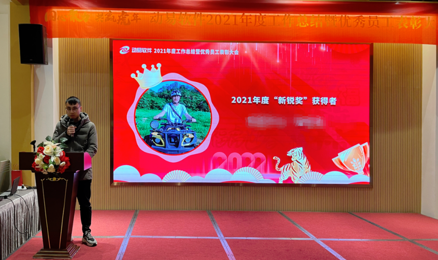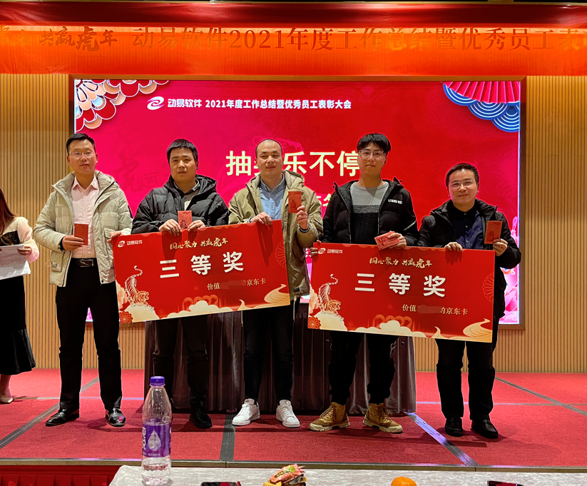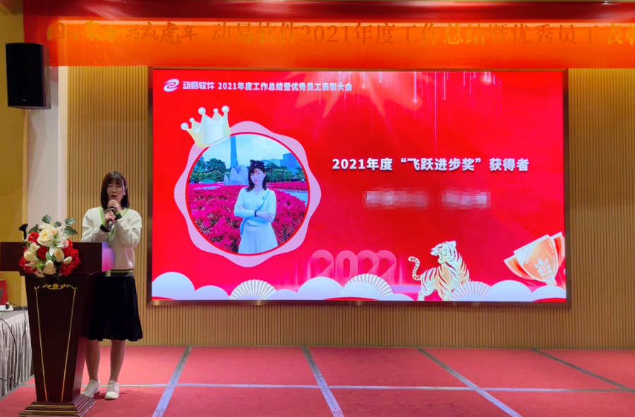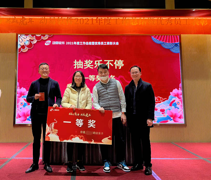 公司對2021年表現(xiàn)優(yōu)異的動易人進(jìn)行了表彰鼓勵, 主持人宣布了獲得各獎項的名單,并由公司高層分別為獲獎者頒發(fā)了表彰證書和獎金。