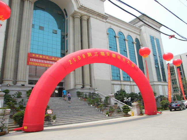 下火車已是5月17日早晨6:30,一大早空氣清新,合肥火車站比較開闊。與主辦方炎黃的管總通了電話,得知大部分嘉賓已在昨晚到達,晚上因活動比較晚還未起床,就直接打的去會議地點新文采大酒店。起初以為酒店離火車站不會太遠,但七轉(zhuǎn)八彎足足開了小半個小時才到新文采。一路上感覺地闊人少,應該是進入了郊區(qū),與江蘇等城市相比還是有些不同。到了新月文采酒店,酒店中中國畫、雕刻、玉石隨處可見,自己對藝術比較敏感,處處感受到了安徽濃厚的文化氛圍。因一周前訂了客房入住也比較順利,客房中既可上網(wǎng),也有畫冊、書籍等供閱讀,放置好隨身行禮就順便先沖涼,同時短信會知了金老大和狼哥。