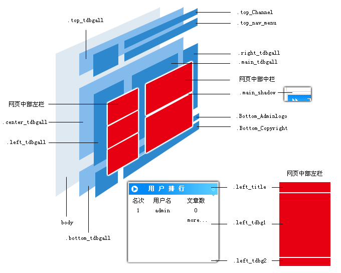 三大區(qū)塊整體定義: .top_tdbgall .center_tdbgall .bottom_tdbgall 備注:本定義一般用于控制頂部、中部、底部表格的寬度、背景色、兩側(cè)連線的定義樣式 |