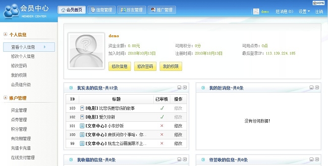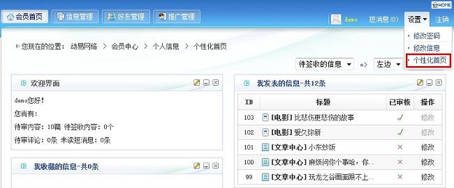 2.會(huì)員中心支持個(gè)性化首頁