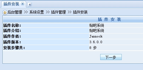 把插件包解壓后整個目錄上傳到網站根目錄 Plugins 目錄下,如是在本地測試可直接放到本機根目錄 Plugins文件夾內。接下來我們打開SiteFactory? 3.6的后臺,依次點擊系統(tǒng)設置——插件管理,我們就可以看到下面出現(xiàn)了“貼吧系統(tǒng)”的插件。然后按照系統(tǒng)的提示一步一步操作即可。
