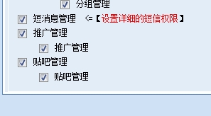 安裝完成后,我們需要對會員組設置權限。依次點擊用戶管理——會員管理——會員組管理——選擇會員組別(根據實際需要選擇)——權限設置——菜單控制——選中“貼吧管理”——保存即可。