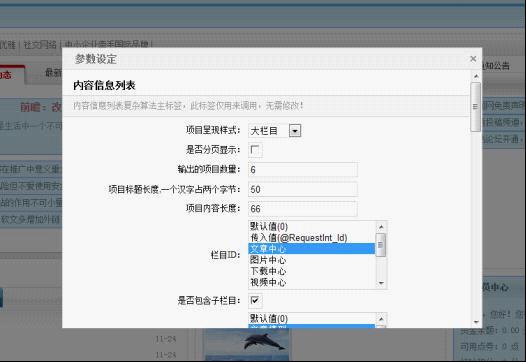 系統(tǒng)后臺(tái)進(jìn)入模板可視塊編輯頁(yè)面,鼠標(biāo)移動(dòng)到需要修改標(biāo)簽參數(shù)的模塊上,頁(yè)面即出現(xiàn)“參數(shù)設(shè)定”選項(xiàng),點(diǎn)擊出現(xiàn)標(biāo)簽參數(shù)修改框,修改后可在界面中看到實(shí)際效果。