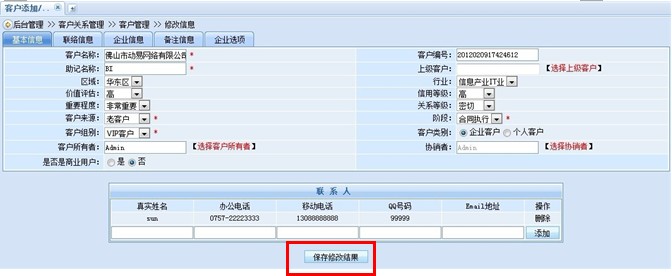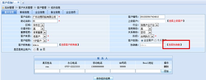 這樣,整個(gè)協(xié)銷的設(shè)置工作就成功完成了,2位銷售人員可以共同查看、修改此客戶的相關(guān)資料,齊心合力完成項(xiàng)目的銷售以及跟進(jìn)工作。協(xié)銷功能的介紹就為大家介紹到這里,趕快來體驗(yàn)一下吧!
