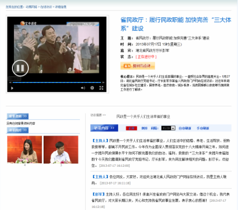 使用動(dòng)易在線訪談系統(tǒng),部門、專家和公眾可在該平臺(tái)通過(guò)視頻、音頻、文字、圖片等形式進(jìn)行信息互動(dòng),建設(shè)政府網(wǎng)站和公眾之間交流溝通的新形式。而視頻直播功能則可讓網(wǎng)民更快的看到聽(tīng)到政府公布的各種信息、頒布的各項(xiàng)政策,加深網(wǎng)民對(duì)政府工作的了解和信任。