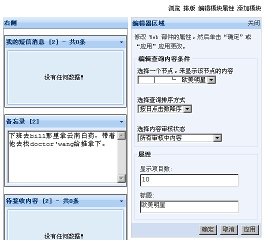 特別是可以將系統(tǒng)相應(yīng)模塊添加到頁面中,比如各個節(jié)點(diǎn)中的文章、下載、圖片等信息和系統(tǒng)內(nèi)置的Webpart模塊。