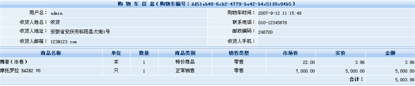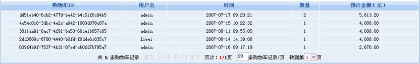 動(dòng)易eShop 2007后臺(tái)具備購(gòu)物車管理功能。注冊(cè)用戶在前臺(tái)購(gòu)物車的所有商品記錄都會(huì)以列表形式匯總到購(gòu)物車管理里面,管理員在可以點(diǎn)擊查看到具體每個(gè)購(gòu)物車的用戶詳細(xì)聯(lián)系信息、購(gòu)買時(shí)間、商品種類、價(jià)格、數(shù)量等等。