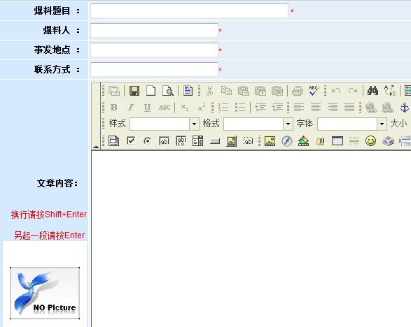 后臺管理員處理信息:爆料人、事發(fā)地點(diǎn)、聯(lián)系方式、是否處理、采納說明、稿費(fèi)金額、爆料內(nèi)容。