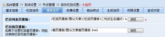 首先,設(shè)置“大自然”節(jié)點(diǎn)的模板選項(xiàng),如下圖所示: