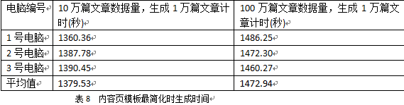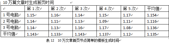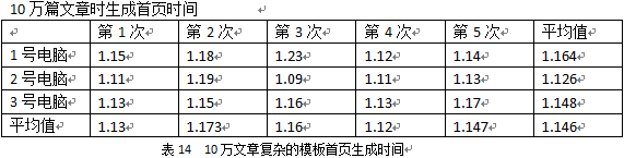 2)使用一個官方默認提供的模板(除了含有文章的標題、作者、更新時間、內容等,還有相關文章、推薦文章、熱門文章等標簽),生成1萬篇文章計時。模板的前臺顯示效果見下圖: