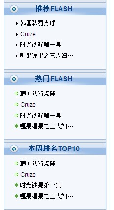 此外,模板中還內(nèi)置了推薦Flash、熱門Flash、本周排名top10等等標(biāo)簽。