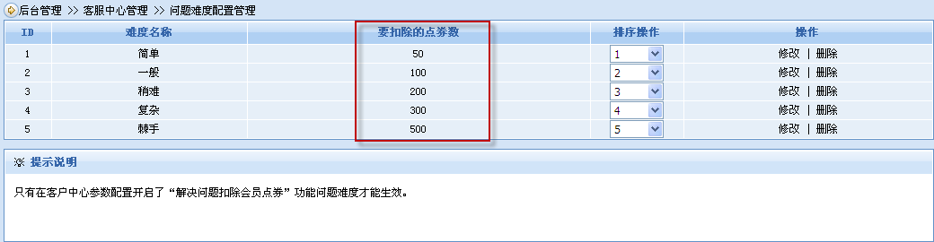 通過設(shè)置有償服務(wù)的運(yùn)營(yíng)模式(解決問題扣除會(huì)員點(diǎn)券的方式),企業(yè)可以在網(wǎng)站上開展有償?shù)氖召M(fèi)客戶服務(wù)。企業(yè)可以讓客戶先行支付服務(wù)費(fèi)用,然后給客戶用戶名添加相應(yīng)金額的點(diǎn)券,待客戶問題解決后管理員再扣除一定的點(diǎn)券。并且可預(yù)先設(shè)置多個(gè)不同的問題難度,不同難度的問題扣除不同的點(diǎn)券數(shù)(如動(dòng)易官方客服中心的解決問題后根據(jù)問題難度扣除一定數(shù)量的動(dòng)易幣)。這樣就使得收費(fèi)更為精確、合理,可以更好地提供收費(fèi)客戶服務(wù),也更好地提高了客戶滿意度。