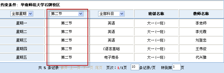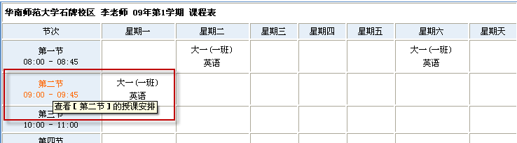 此外,還可以直接點擊任意課表上的教師姓名或課程節(jié)次來直接查詢該教師或改節(jié)次的排課情況,非常方便快捷。