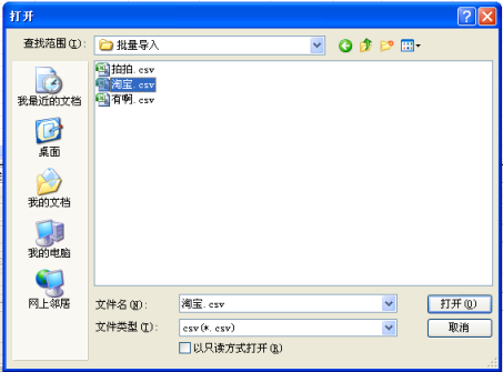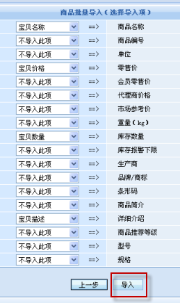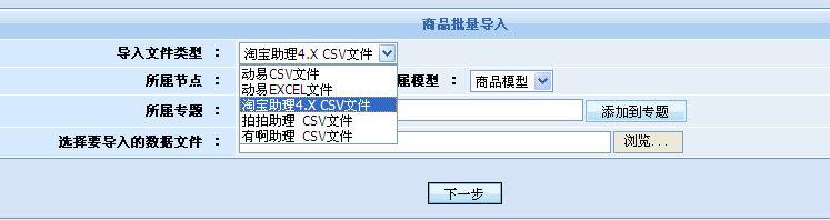點(diǎn)擊“瀏覽”選擇之前從淘寶導(dǎo)出的CSV文件,可按照系統(tǒng)提示步驟一步一步將從淘寶\拍拍\有啊等平臺(tái)導(dǎo)出的商品數(shù)據(jù)導(dǎo)入進(jìn)來(lái):