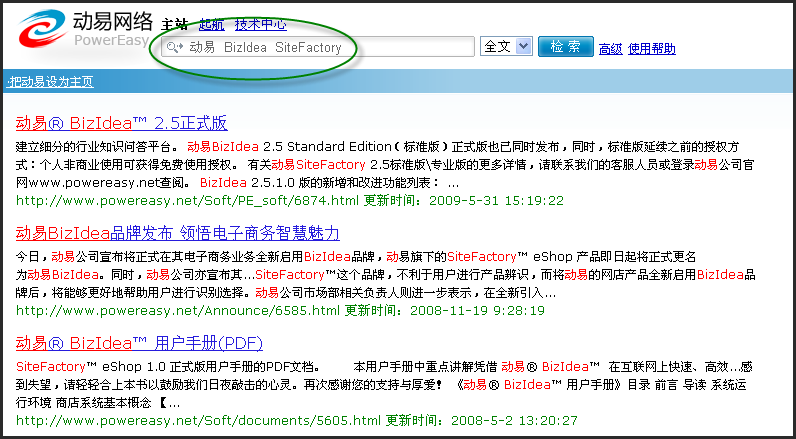 現(xiàn)在登錄動(dòng)易官方網(wǎng)站便可以即刻體驗(yàn)到這么強(qiáng)大而易用的動(dòng)易全文檢索功能啦:http://s.powereasy.net/,趕緊去試試吧!