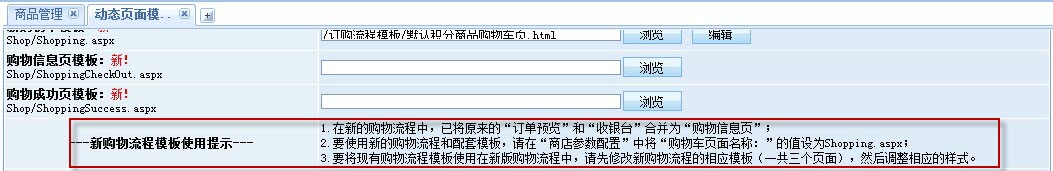 而升級(jí)用戶如果需要把原有的購物流程模板挪用到新的購物流程中,則還需要在后臺(tái)修改相應(yīng)的模板樣式,并且修改過程有詳細(xì)的提示文字: