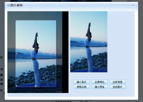 從截圖上我們可以看到,在圖片裁剪的操作界面系統(tǒng)還提供了全透明化、白色背景、是否使用比例等系列功能,可以非常方便地對圖片進行剪裁編輯。裁剪完畢后,直接點擊“生成圖片”即可自動保存裁剪結(jié)果。