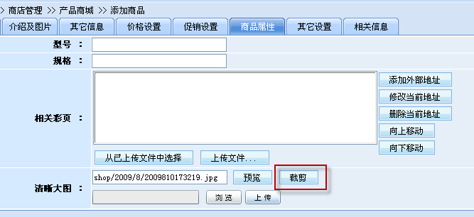 此外需要說明的是,圖片在線裁剪功能不僅在內(nèi)容模型中提供,在其他的任何模型中所新增的圖片字段也同樣支持圖片在線裁剪功能。如商品模型可用于對各種商品圖片的在線剪裁: