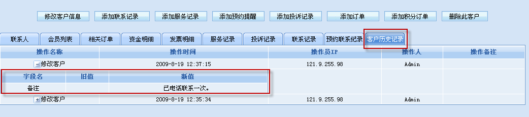 后臺(tái)客服人員對(duì)客戶(hù)信息的任何修改記錄,系統(tǒng)均將自動(dòng)記錄在案,如同訂單歷史記錄。這樣便可以方便地查看到該客戶(hù)信息的所有歷史修改記錄,同時(shí)也可以對(duì)客服人員擅自修改客戶(hù)信息的現(xiàn)象進(jìn)行有效的監(jiān)督。