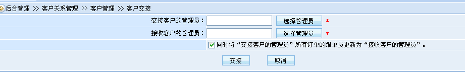 系統(tǒng)提供了客戶(hù)交接功能,可以將一個(gè)客服人員下屬所有客戶(hù)一次性全部交接給另一個(gè)客服人員,交接后,客服A的所有客戶(hù)所有者便自動(dòng)轉(zhuǎn)為客服B,這樣就方便了當(dāng)客服A離職或因其他原因不再處理客戶(hù)時(shí)可以將其所有客戶(hù)便捷地交接給另外的客服人員。